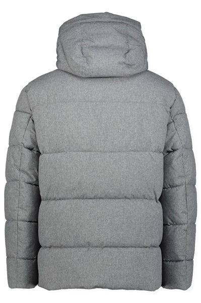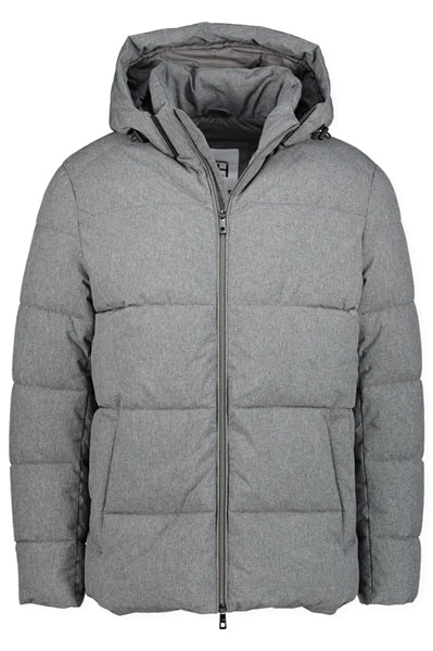 Lys grå vinterjakke med avtakbar hette. Vannavstøtende.