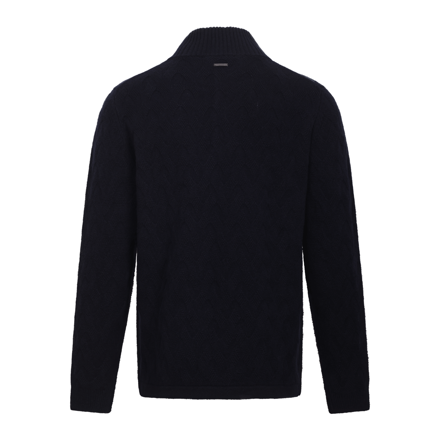 Marineblå genser med struktur.